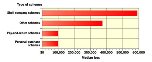 Pass-through schemes use a shell company established by an employee to purchase goods or services for the employer, which are then marked up and sold to the employer through the shell. The employee converts the mark-up to his or her own benefit.